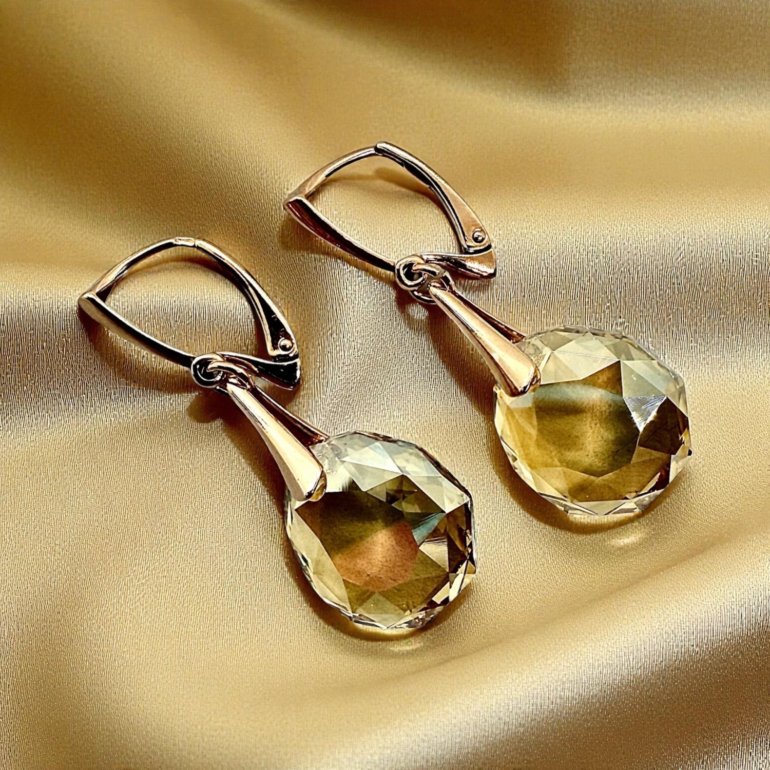 Auskari ir izgatavoti no augstākās kvalitātes 925 proves sudraba, kas papildināts ar 14 karātu zelta pārklājumu, piešķirot tiem siltu un greznu toni. Auskaru angļu tipa aizdarītes ir stingras un kvalitatīvas , radot drošības sajūtu valkāšanas procesā.