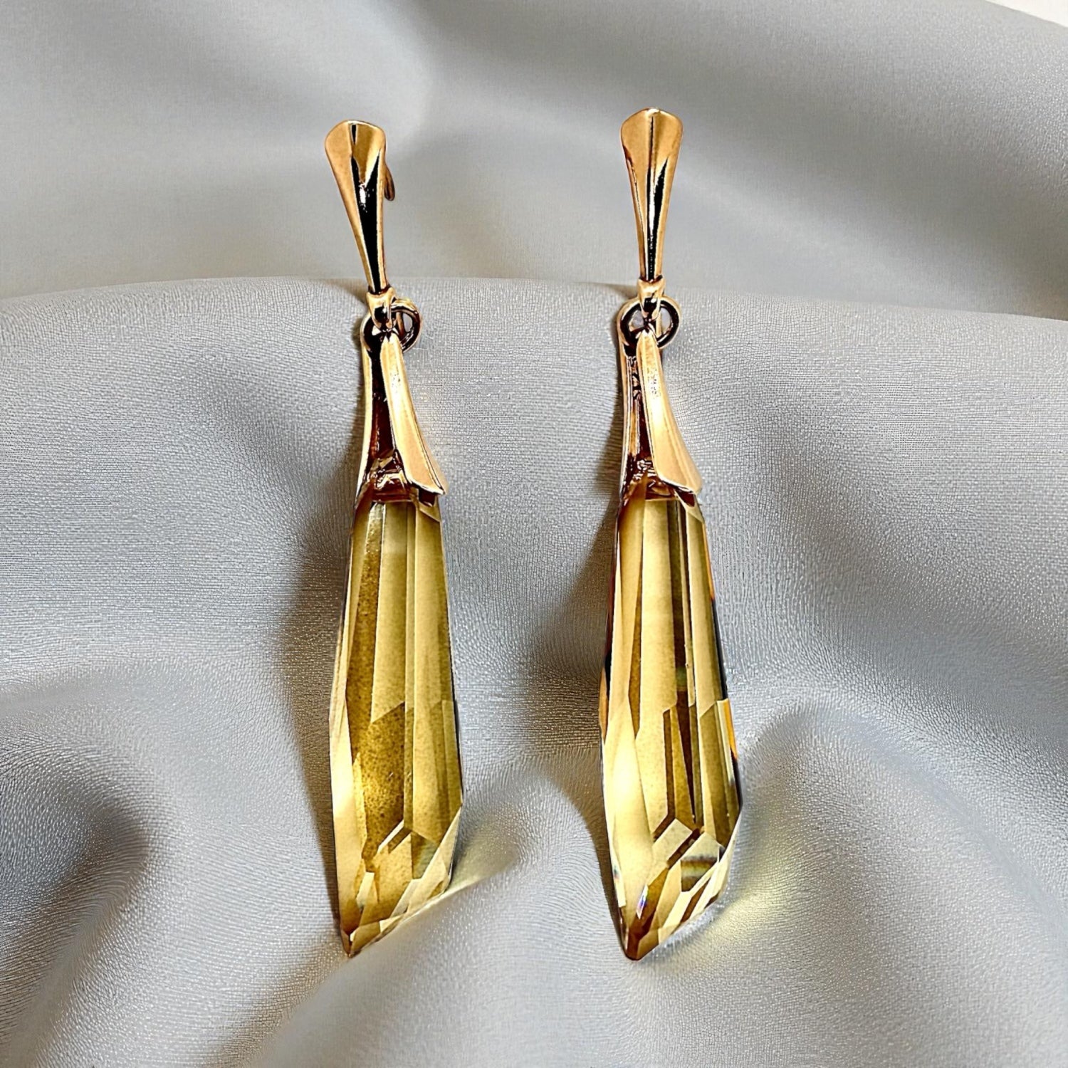Auskari ir izgatavoti no augstākās kvalitātes 925 proves sudraba, kas papildināts ar 14 karātu zelta pārklājumu, piešķirot tiem siltu un greznu toni. Auskaru angļu tipa aizdarītes ir stingras un kvalitatīvas , radot drošības sajūtu valkāšanas procesā.